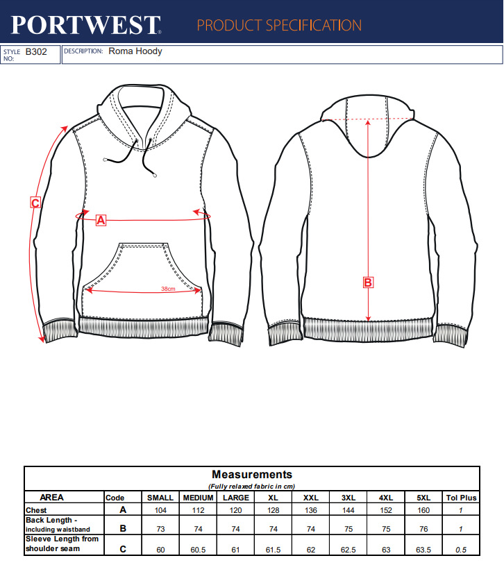 Portwest B302 Roma Hoodie B302