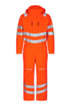 Fluorescent breathable, wind and waterproof winter boiler suit with taped seams and a high neck in a modern cut. Double placket closure with zip and Velcro at the front. Two spacious side pockets with Velcro closure. Two breast pockets and inside phone pocket with option to pull a cable through, as well as zip closure. Detachable hood with space for safety helmet. Rib detail on the lower back for optimum fit and movement. Reinforced knee. Adjustable cuffs on the sleeves and lower leg. Zip on the outside of both legs. Zip in lining to for print/embroidery. Reflectors across the shoulders and around the sleeve, waist and legs. Class 3. Tested after 50 machine washes.