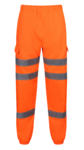 Premium Reinforced High Visibility Orange Fleece Jogging Bottoms, Fully Elasticated Waistband and Ankles - 3 Band Design for use on Railways and Highways.