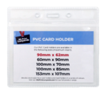 View the PVC Card Holder 60x90mm Landscape, the perfect card holder and attachment for your lanyards. The clear PVC design allows people to see your ID cards easily and is simple to attach either to yourself or lanyard.