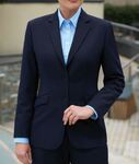 65% Polyester (Recycled), 35% Viscose. 2 button classic fit jacket, notch lapel, 1 inside pocket, centre vent. Centre back length at size 12R = 65.5cm